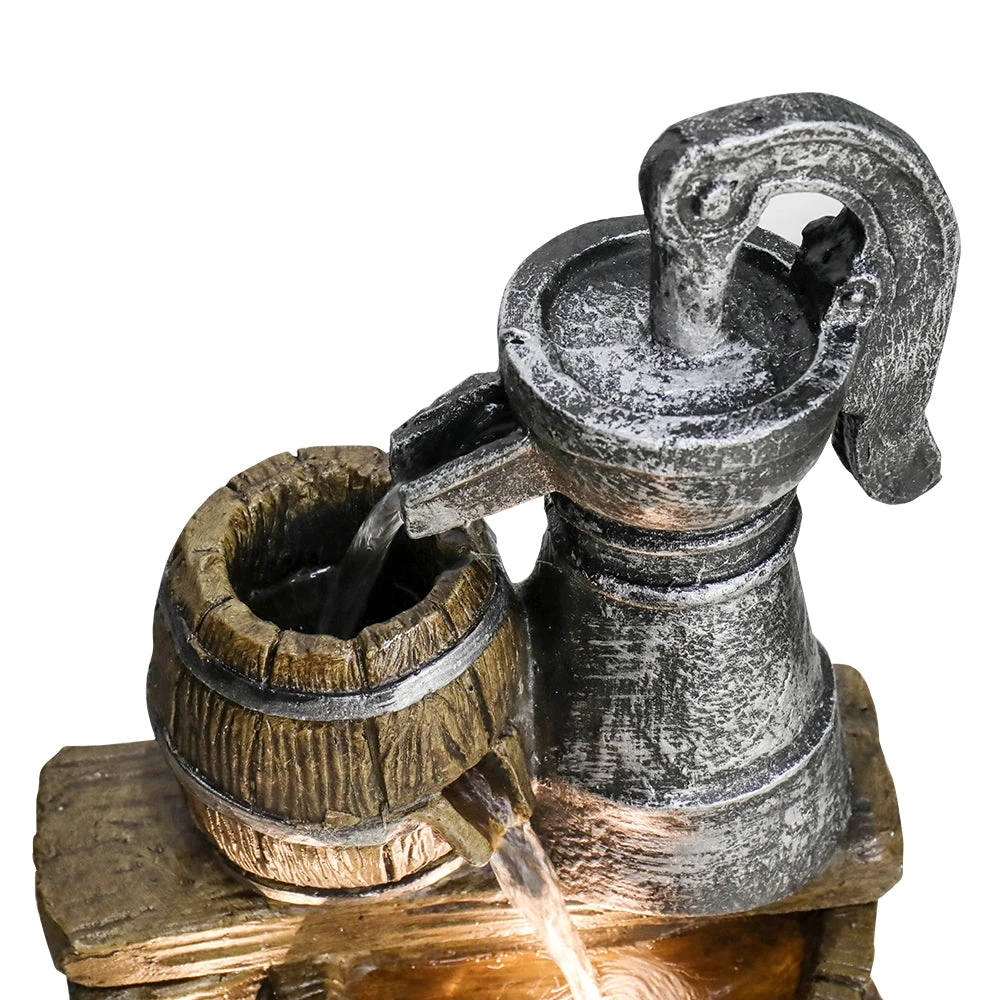 Elevate your garden with the 25.5”H 3-Tiered Retro Barrel Outdoor Fountain. This stunning centerpiece combines rustic barrel charm with a modern three-tiered water flow, creating a serene auditory and visual experience. Enhanced with energy-efficient LED lights for enchanting evening displays, its durable, weather-resistant construction ensures year-round beauty. Easy to assemble and maintain, it’s the perfect upgrade for any patio, deck, or backyard oasis.