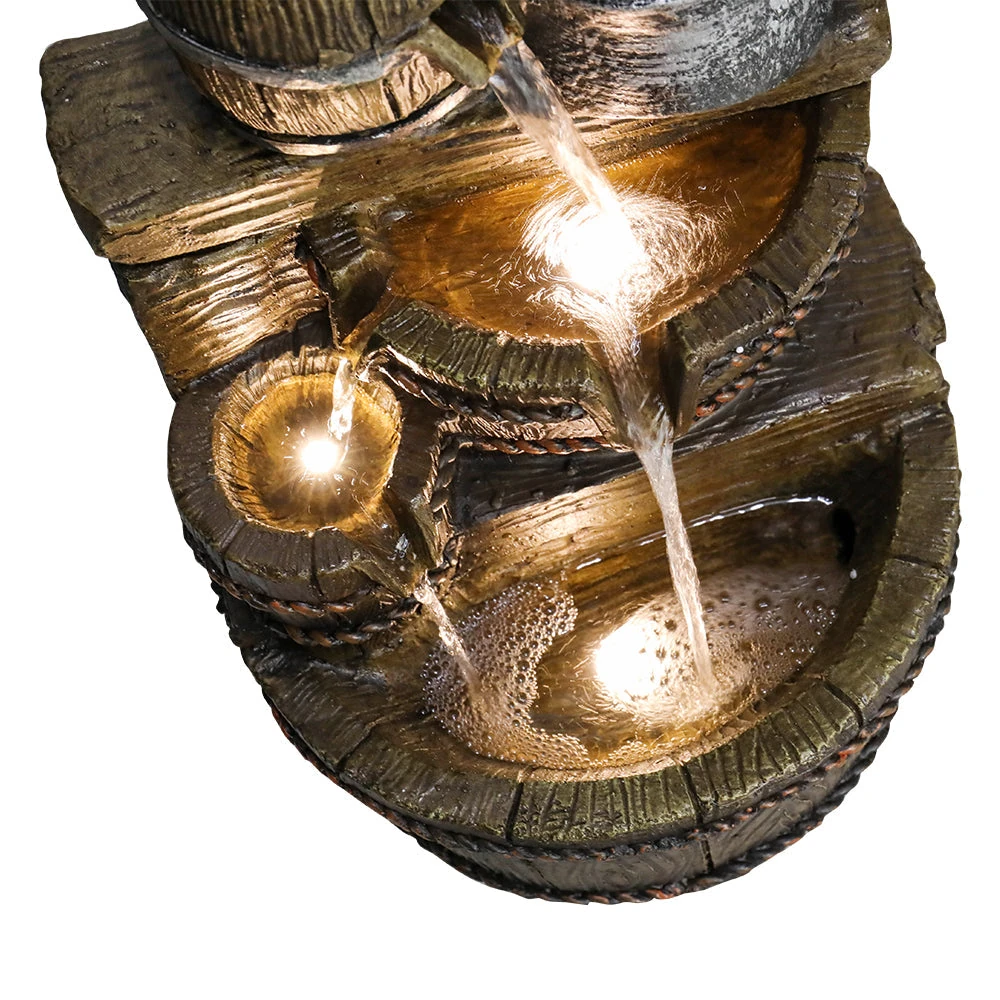 25.5”H 3-Tiered Retro Barrel Outdoor Fountain with LED Lights